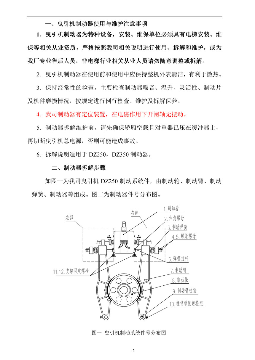 電梯鼓式制動器,拆解維護,說明書,技術指導